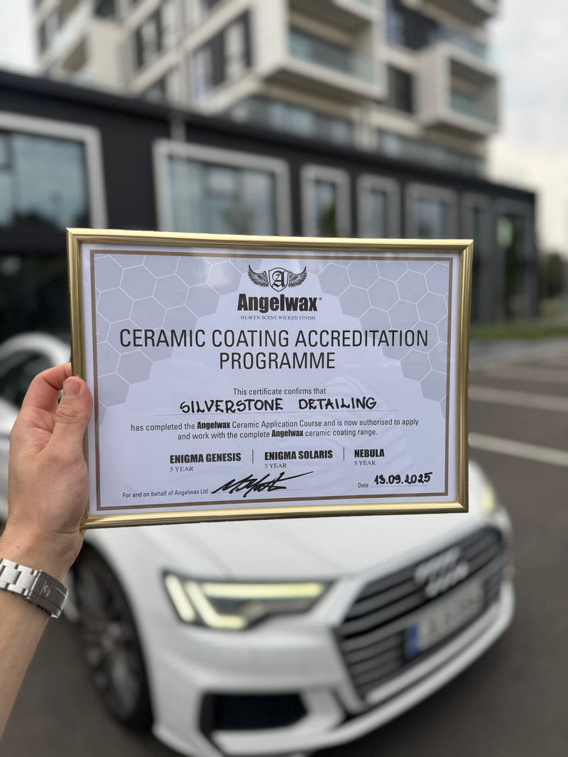 Oleme uhked Angelwax keraamika sertifitseeritud paigaldajad. Meie meeskond on läbinud põhjaliku koolituse ja omab ametlikku sertifikaati, et pakkuda teile kõrgeima kvaliteediga keraamikakatteid.